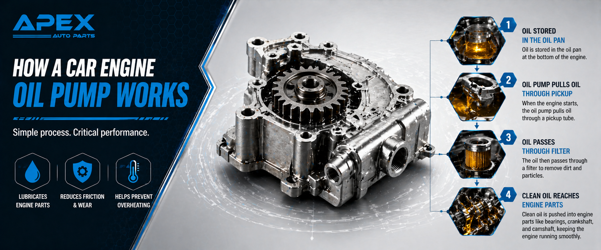 Reliable suppliers like Apex Auto Parts offer a wide range of engine parts, including those related to the Engine Oil Pump, helping drivers keep their engines in good shape.