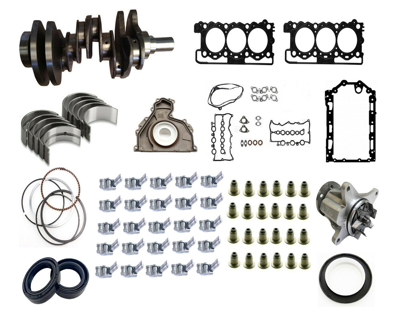 Parts Included In Kit: Crankshaft, Main Crankshaft Bearings, Big End Con Rod Bearings, Piston Rings Set, 2 X Head Gaskets, Head Set, Sump Gasket, Front Seal, Rear Crankshaft Seal, 2 X Camshaft Seals, 1 X Water Pump, 25 X Rocker Arm With Tappet, 24 X Valve Oil Seal